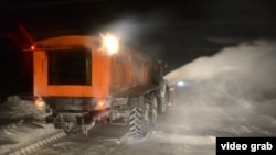 "Этой машине лет сорок, – рассказывает водитель снегоочистителя Николай. – Ломается первый раз. Снегоочиститель недавно купили из воинской части, с консервации. Что в нем там замкнуло – никто не знает".