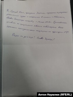 В конце текста Сенцов приписал по-украински: "Вместе и до конца. Слава Украине!"