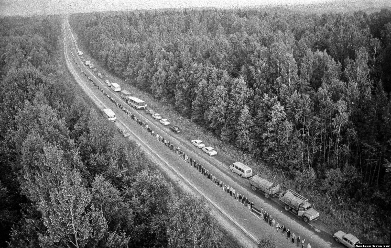 23 августа 1989 года прошла акция "Балтийский путь". Более двух миллионов ее участников – жители Литвы, Латвии и Эстонии – выстроились в живую цепь протяженностью около 670 километров, соединив Вильнюс, Ригу и Таллинн. Акция была приурочена к 50-летию со дня подписания пакта Молотова – Риббентропа.