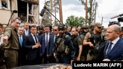 После прибытия в Киев все четверо руководителей стран ЕС приехали в Ирпень – город по соседству со столицей Украины, в котором шли бои в феврале и марте. Многие здания были разрушены, погибли сотни мирных жителей.