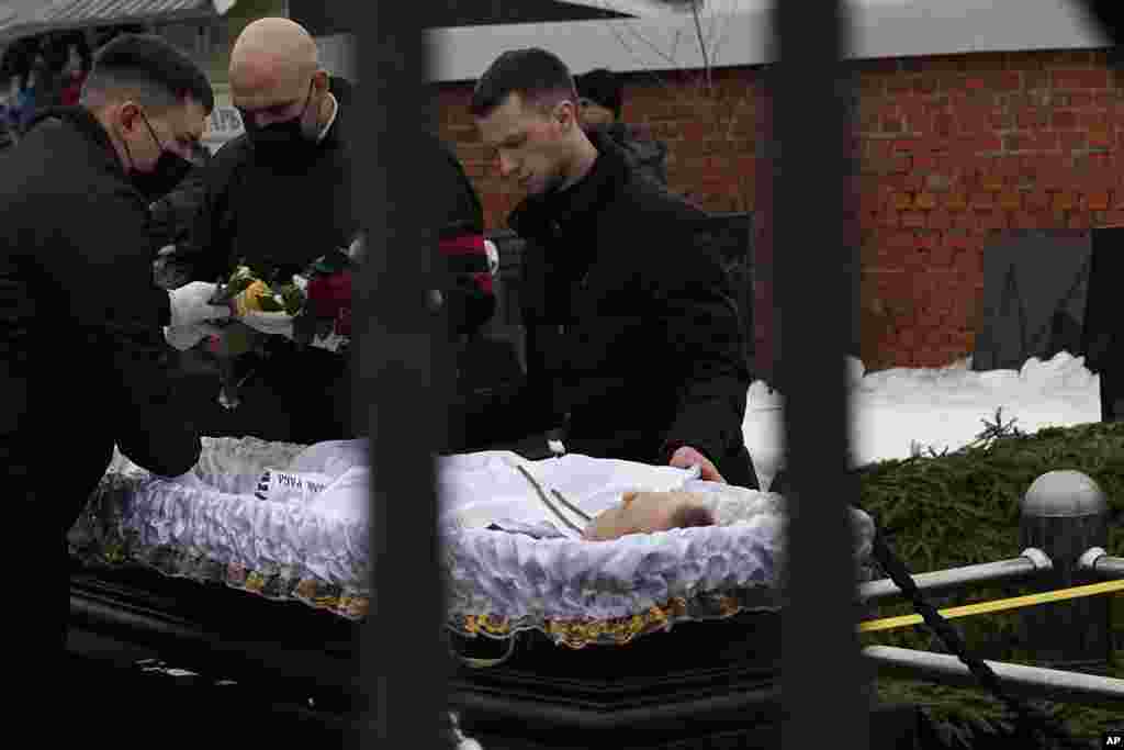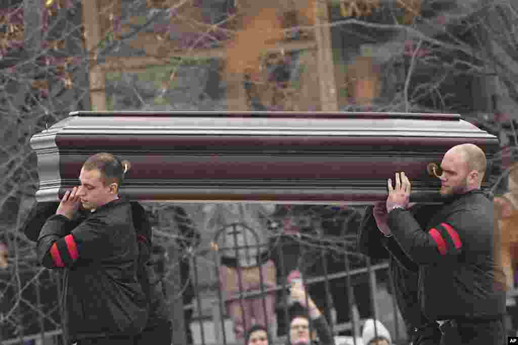 Гроб с телом Алексея Навального вносят на территорию кладбища