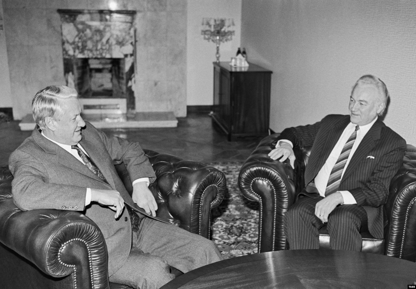 Президент РСФСР Борис Ельцин и председатель Верховного Совета Эстонской республики Арнольд Рюйтель во время встречи в Кремле 1 ноября 1991 года